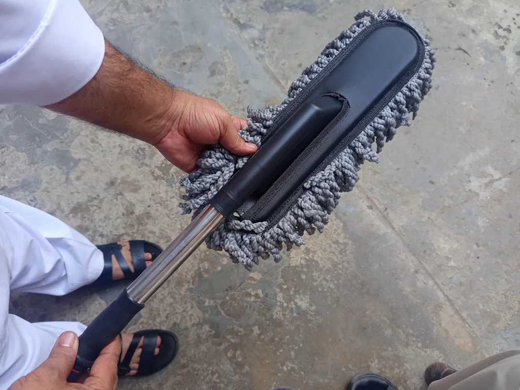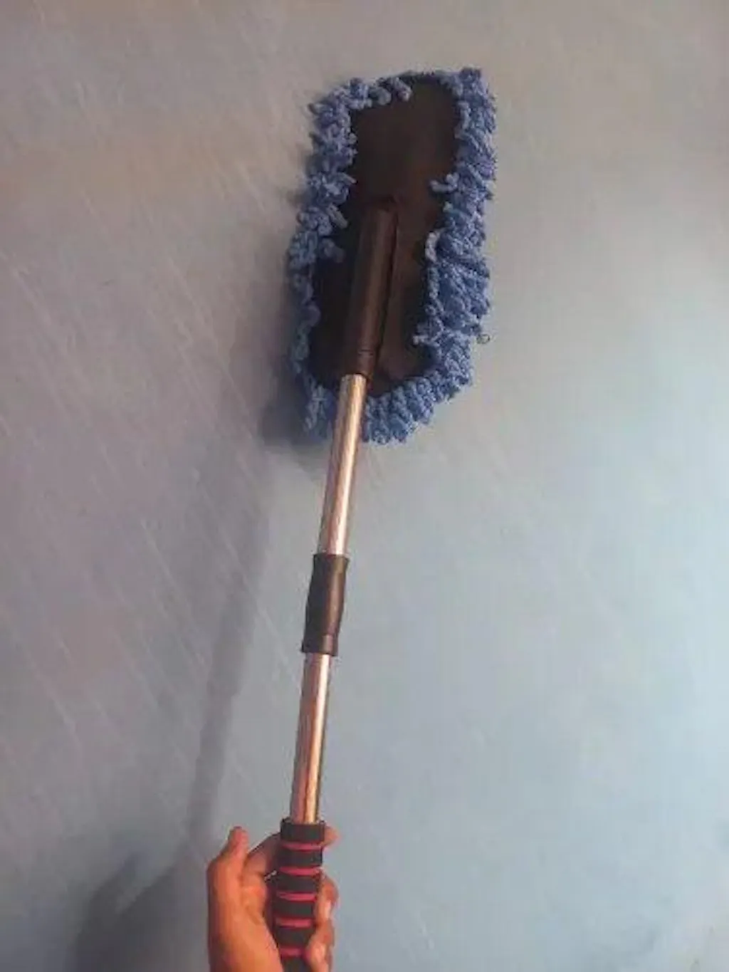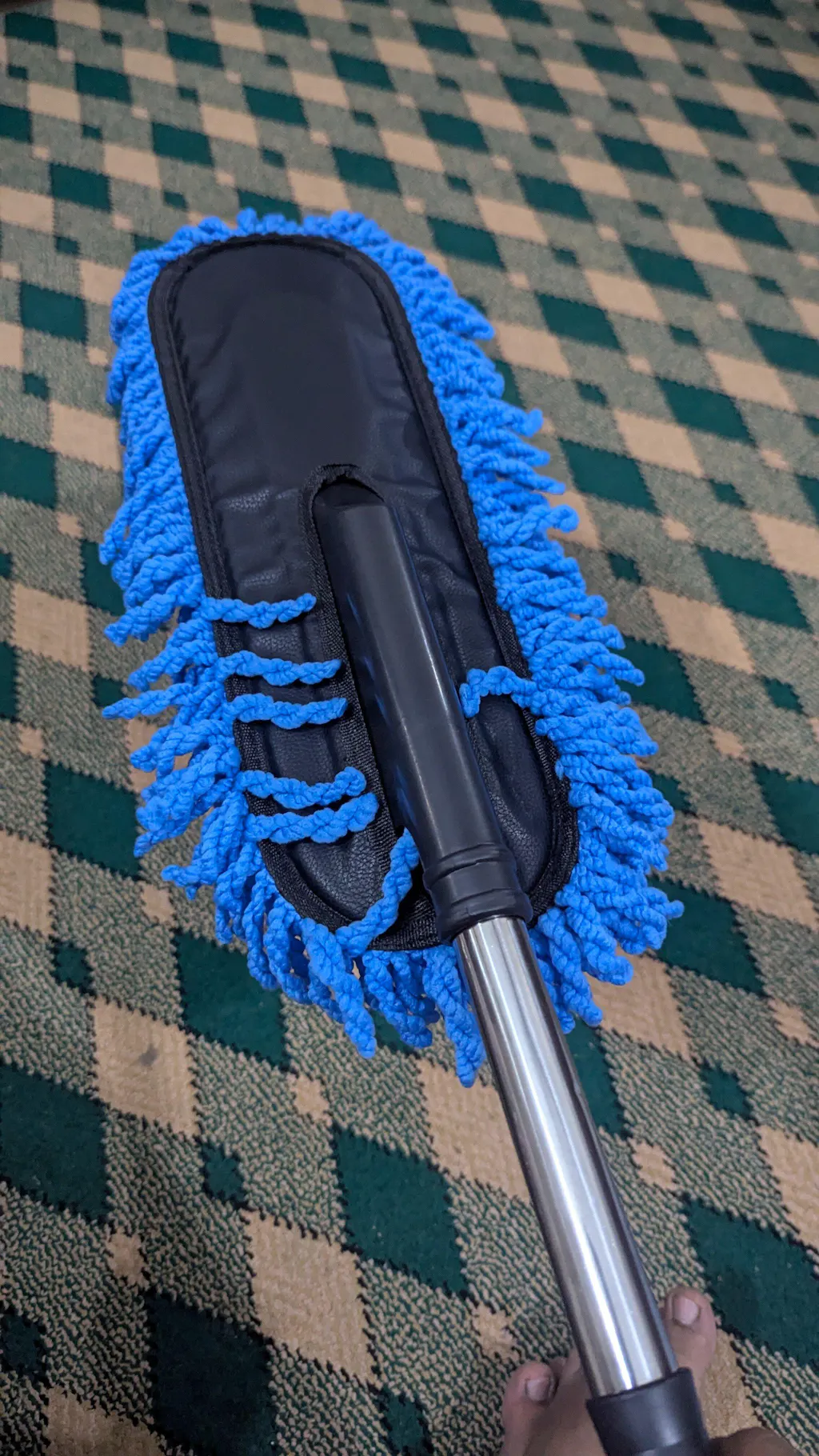 Clean your car easily at home with this scratch-free microfiber car duster. The soft microfiber head safely removes dust, dirt, and water marks without damaging the paint. Its extendable handle helps you reach the roof, windshield, and other hard-to-clean areas with ease.